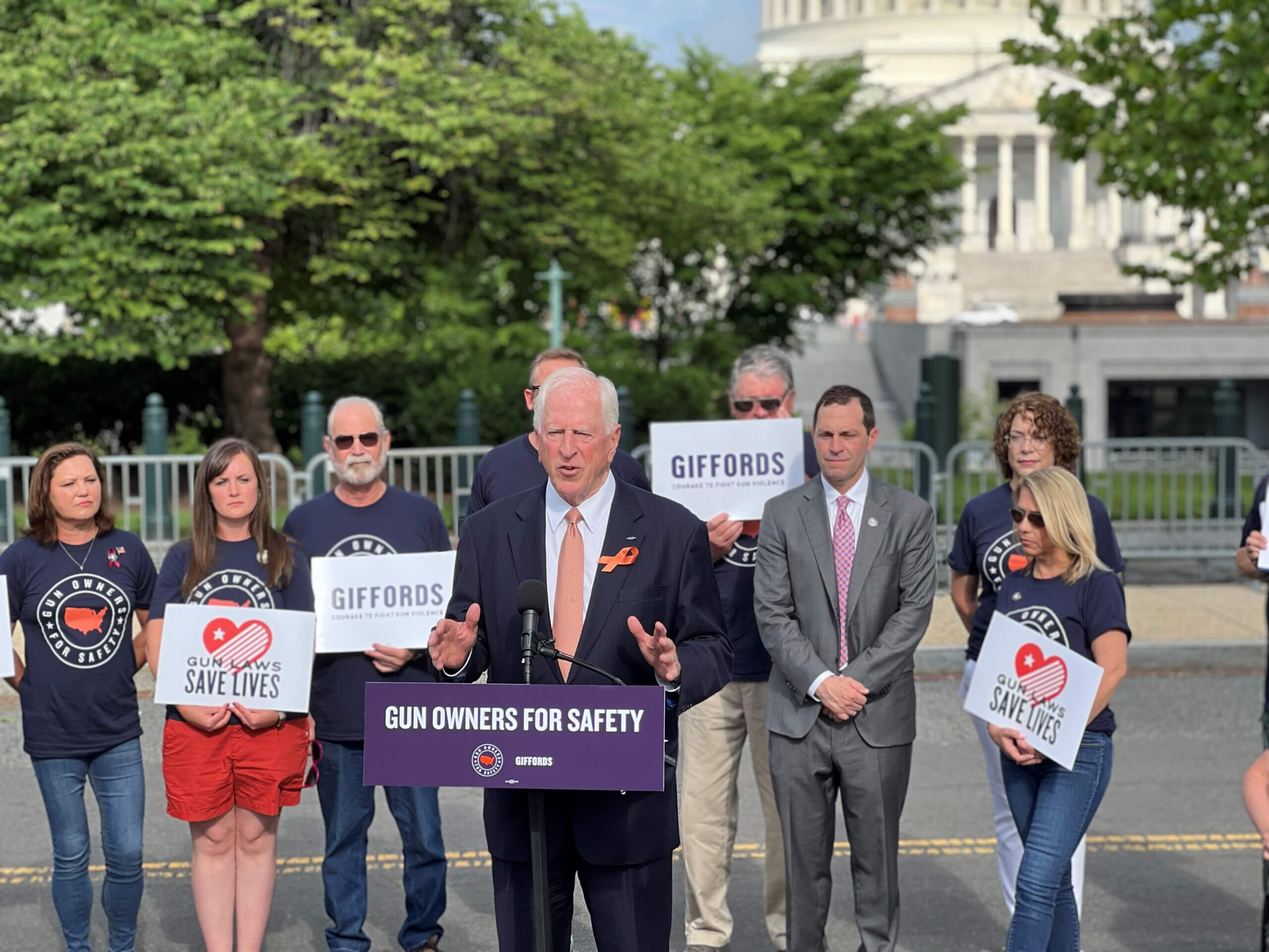 Rep. Mike Thompson (CA-05), center, at a Capitol Hil press conference Tuesday calling for federal legislation to end gun violence and help save lives.