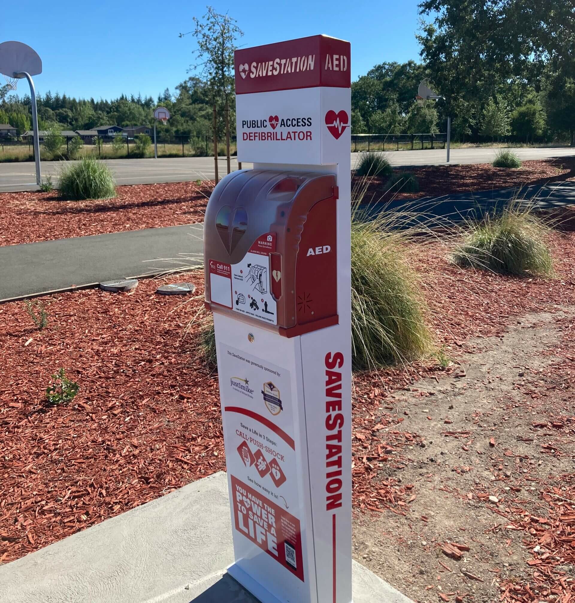 The first AED was installed next to the outdoor basketball courts in February of this year. Just a few months later that AED was used to save the life of a 2022 Sonoma High graduate (see page 2).