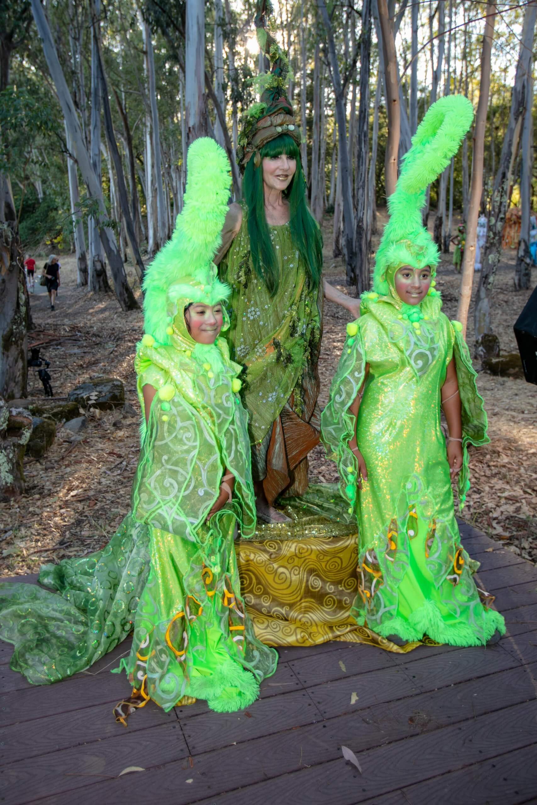 After a family-style meal by Elaine Bell, served in the Winery Ruins, “The Dance of the Four Seasons” and other pieces were performed by magical forest creatures and aerial faeries. The park’s 2,000-year-old redwood, affectionately known as the Grandmother Tree, was brought to life to sing a lullaby and tell an ancient story.
