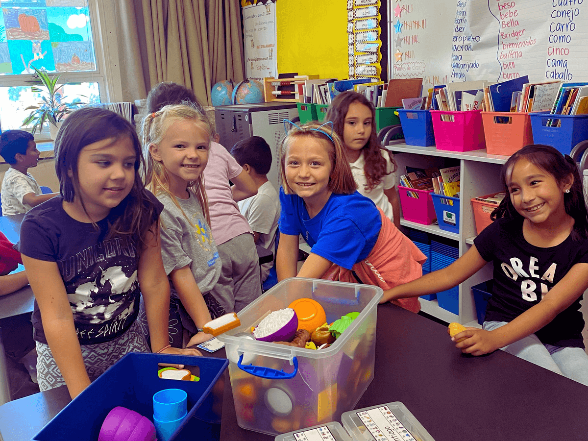The materials she requested will also be used as models during social studies and other content areas. “In social studies we focus a lot on communities and what they look like and what are essential parts of a community,” Garibay continues. “The play/model towns will be used to model this to my students. Another one of our focus areas is about producers and consumers. The play food will also be used during this social studies unit.”