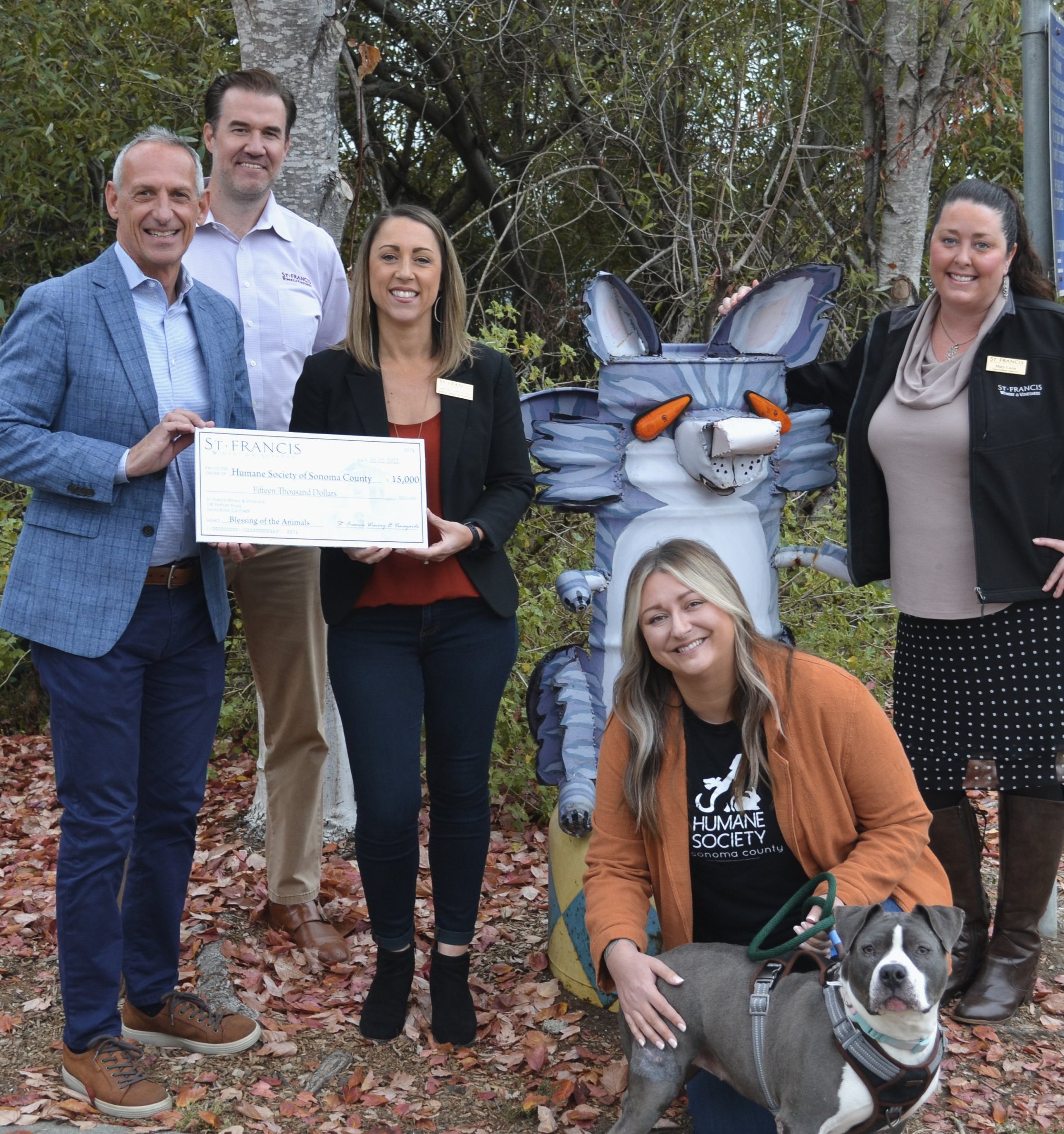 St. Francis Winery & Vineyards presents the proceeds of its recent Blessings of the Animals event in a check to the Humane Society of Sonoma County.