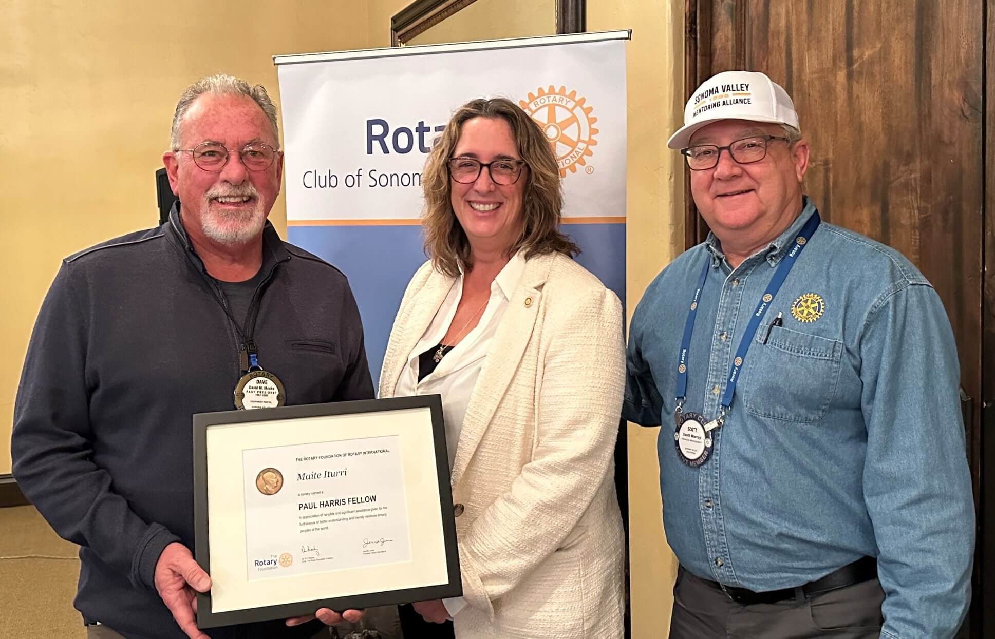 For her many contributions to Sonoma Valley, Maite Iturri has been recognized as a Paul Harris Fellow by the Rotary Club of Sonoma Valley.