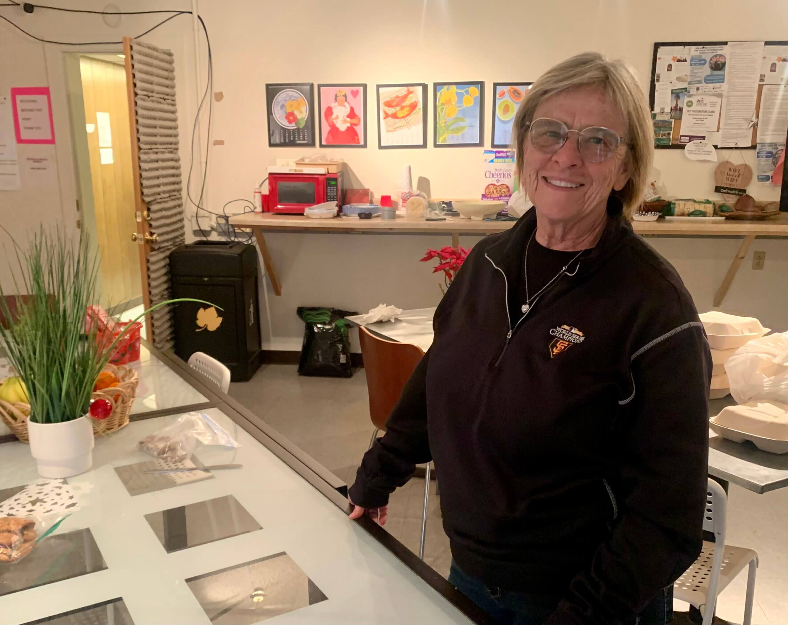The space was made available by building owner Dave Jefferson, but the rest of expenses are borne by HAS – the city and county have not contributed to the effort. “This has put a big hole in the budget but we are doing good work,” said HAS’ Annie Falandes, above, in the new Community Room. “Great preview for the village [in the Springs] which should be up and running by the end of March.”