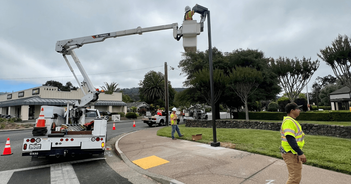 One element of the plan is better curbside lighting. City of Sonoma Public Works Streets Division, along with Sonoma County Public Infrastructure and the Sonoma County Water Agency, placed the light poles at the northwest and southeast corners of the intersection.