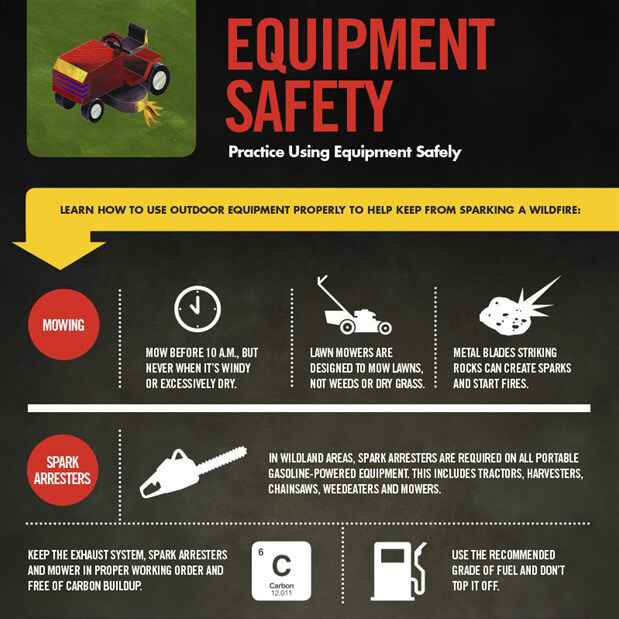 Avoid sparking a fire by learning how to use equipment properly. Read CalFire’s Equipment Use guidelines to make sure you are using equipment the right way.