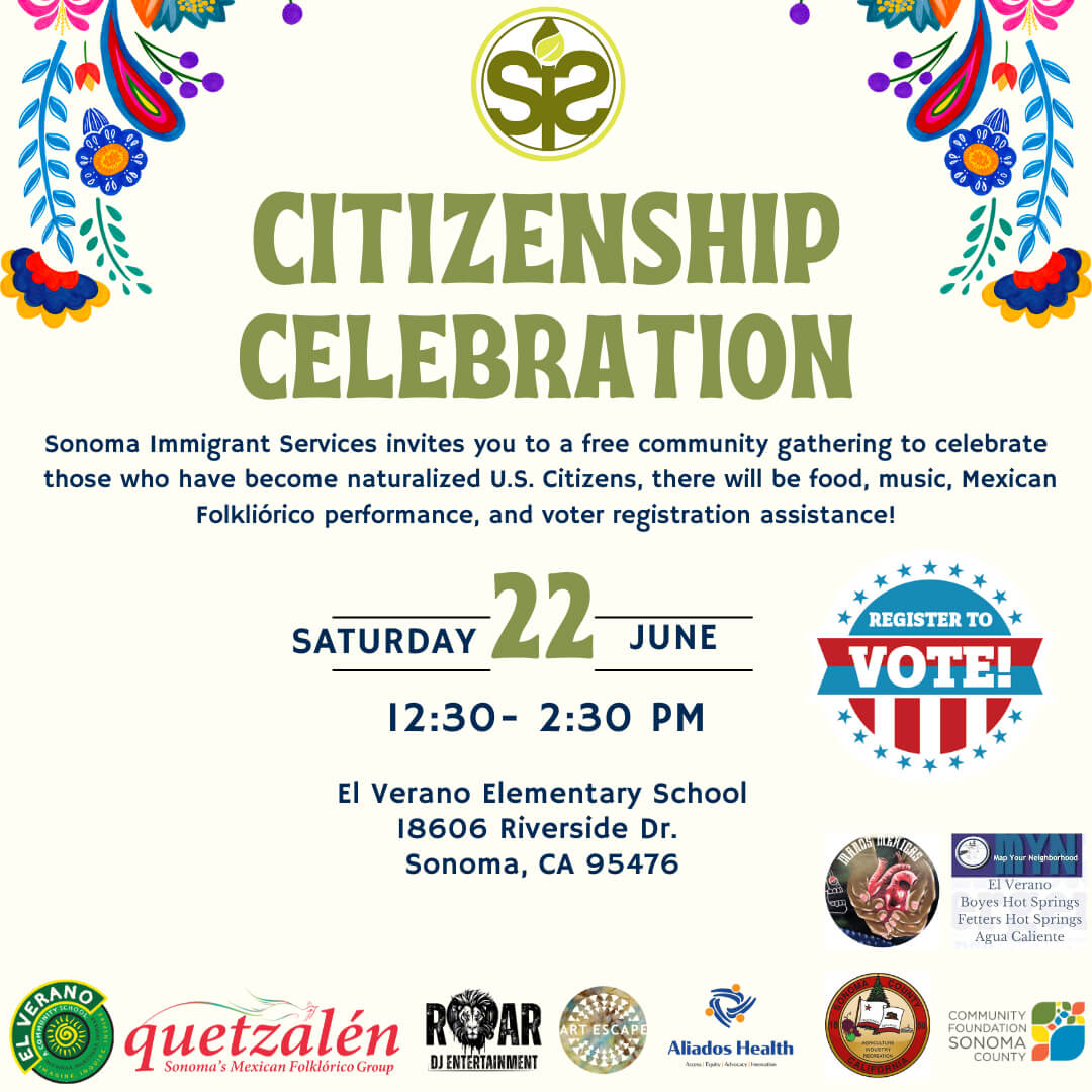 On June 22 Sonoma Immigrant Services invites the community to join a celebration of local naturalized citizens. The free event promises music, food and will feature entertainment by local folkloric dance troupe Quetzalén.