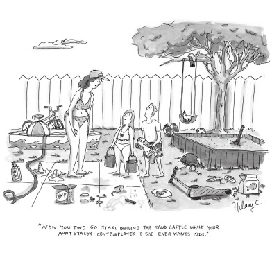 “Now you two go start building the sand castle while your Aunt Stacey contemplates if she ever wants kids.” More from Cartoons by HilaryMore posts in Cartoons by Hilary »Cartoon by Hilary: “Do not eat pie contest”Cartoon by Hilary: “Do not eat pie contest”Cartoon by Hilary: “No Karen, I don’t think adding ABBA makes this more fun”Cartoon by Hilary: “No Karen, I don’t think adding ABBA makes this more fun”Cartoon by HilaryCartoon by HilaryCartoon by Hilary: “I can’t help but notice your outfit today.”Cartoon by Hilary: “I can’t help but notice your outfit today.”