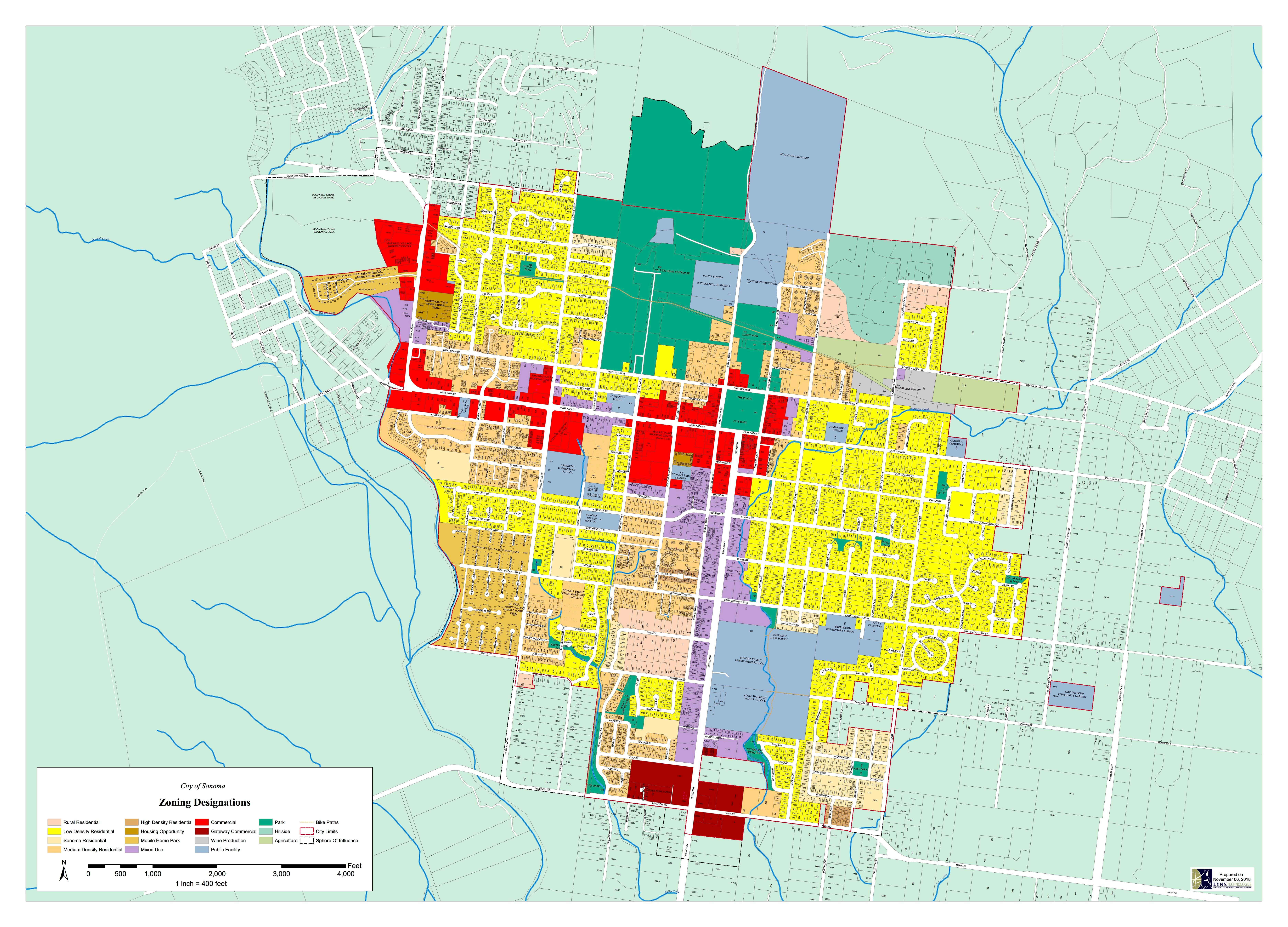 The City of Sonoma, like all governmental jurisdictions, regulates how property can be used, not who can own it. Accordingly, land parcels in the city are owned privately by individuals and businesses, and publicly by the government, such as parks, cemeteries, and government building locations.