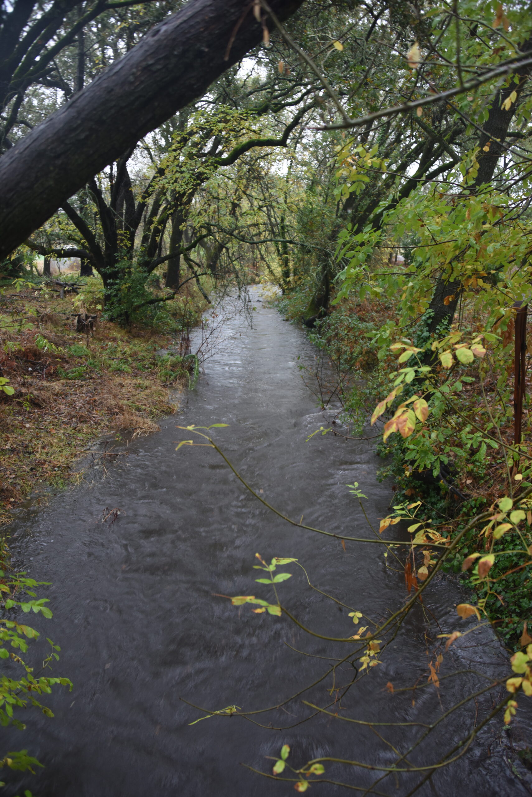 Nathanson Creek, which flows through the campus of Sonoma Valley High School, was flowing full and smoothly at 4 p.m. and had not risen out of its banks.