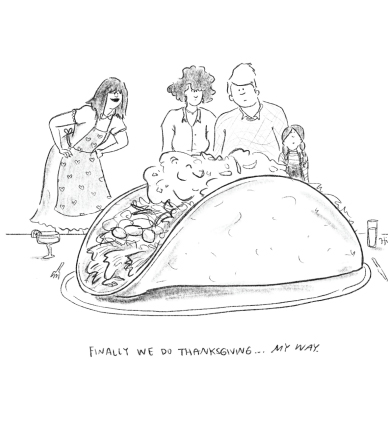 Cartoon by Hillary: “Finally We Do Thanksgiving…My Way”