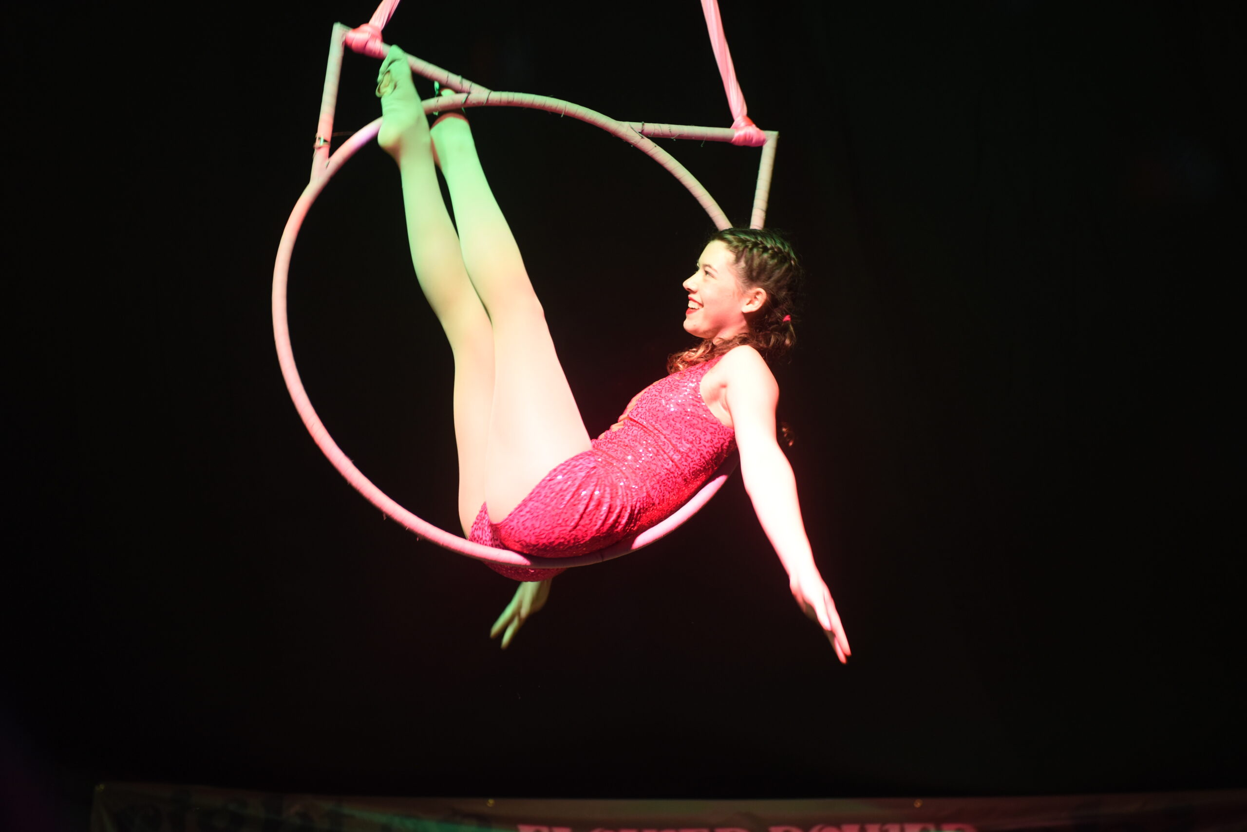 We saw a juggler on a unicycle keep four electrified bowling pins flashing in the air as he circled the stage. We saw aerialists contort and suspend their bodies from ropes, trapeze bars and columns of silk. We saw a very large magician pull a six foot-long balloon from a 12-inch paper bag while inelegantly solo dancing to the music of the Bee Gees. Stayin’ Alive, oh yeah.