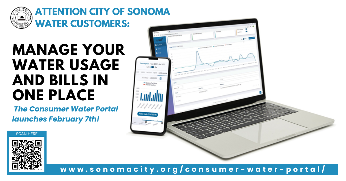 The City of Sonoma is excited to introduce the Consumer Water Portal, a new online tool launching February 7, 2025, that allows residents and businesses to monitor their water usage daily through the City’s existing online bill payment platform.