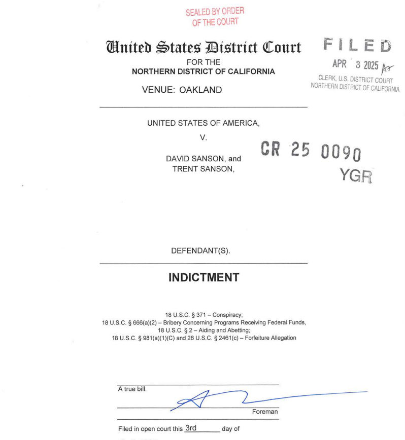 On April 3, 2025, a criminal indictment was filed against the father and son owners of De Nova Homes, a development company that has built two housing developments in the City of Sonoma (Hummingbird Cottages and Mockingbird Estates) and has a third application in the works for an apartment complex on Highway 12.