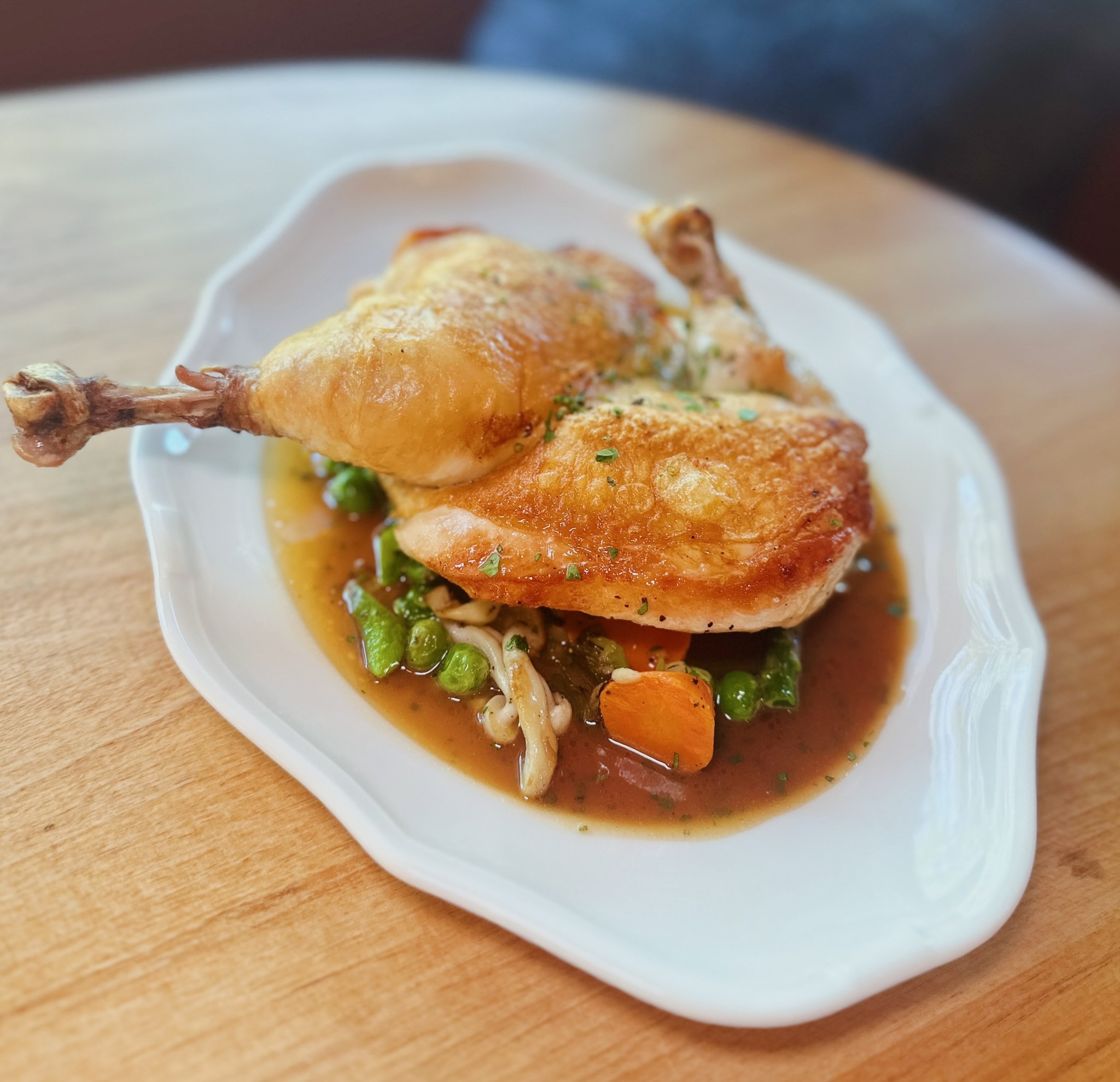 Still expected to make the changing final menu might be coquilles St. Jacques, Mount Lassen trout, roast chicken as only the French can do it, porc, a short rib confit and possibly steak au poivre.