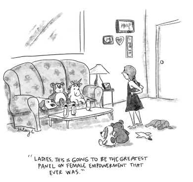 Cartoon By Hilary: “Ladies this is going to be the greatest panel on female empowerment that ever was.”
