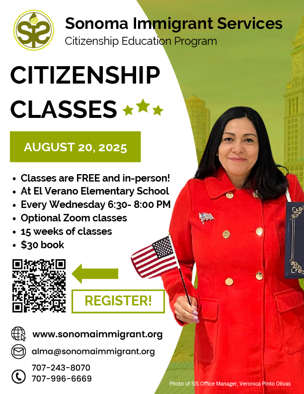 Sonoma Immigrant Services Offers Free Citizenship Classes Beginning August 20 More from NewsMore posts in News »Larry Barnett: The Engine of Civilization?Larry Barnett: The Engine of Civilization?California students with disabilities face ‘terrifying’ special ed cuts after Trump changesCalifornia students with disabilities face ‘terrifying’ special ed cuts after Trump changesCartoon by HilaryCartoon by HilaryKaty Byrne: Fa la la la la, Falderol and Holiday Next StepsKaty Byrne: Fa la la la la, Falderol and Holiday Next Steps
