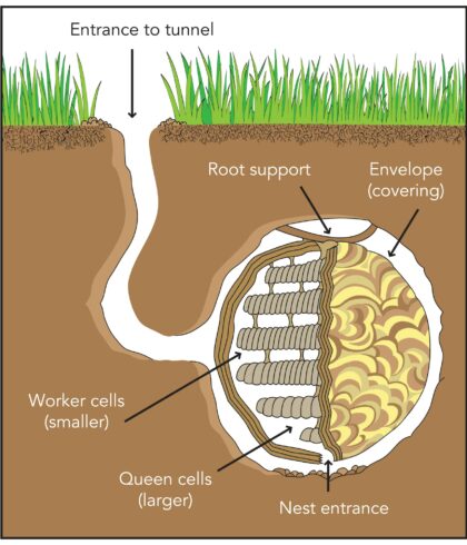 After the season ends, the entire colony dies, except for the queen, who overwinters underground and starts again next year.