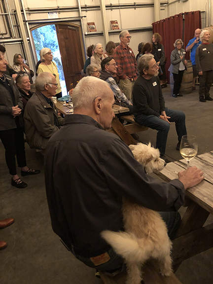 Mayo Family wine and snacks contributed by Spread Kitchen and Vella Cheese and music by Sean Carscadden combined for a pleasant couple of hours in the Barrel Room at the winery. David Bolling, Larry Barnett and Anna Pier (Alyssa Conder was ill and could not attend) all spoke to the crowd about the ways in which the Sonoma Valley Sun has improved over the past year and a half and what kinds of improvements are planned for the future. They also thanked the assembled crowd for their support and appreciation.