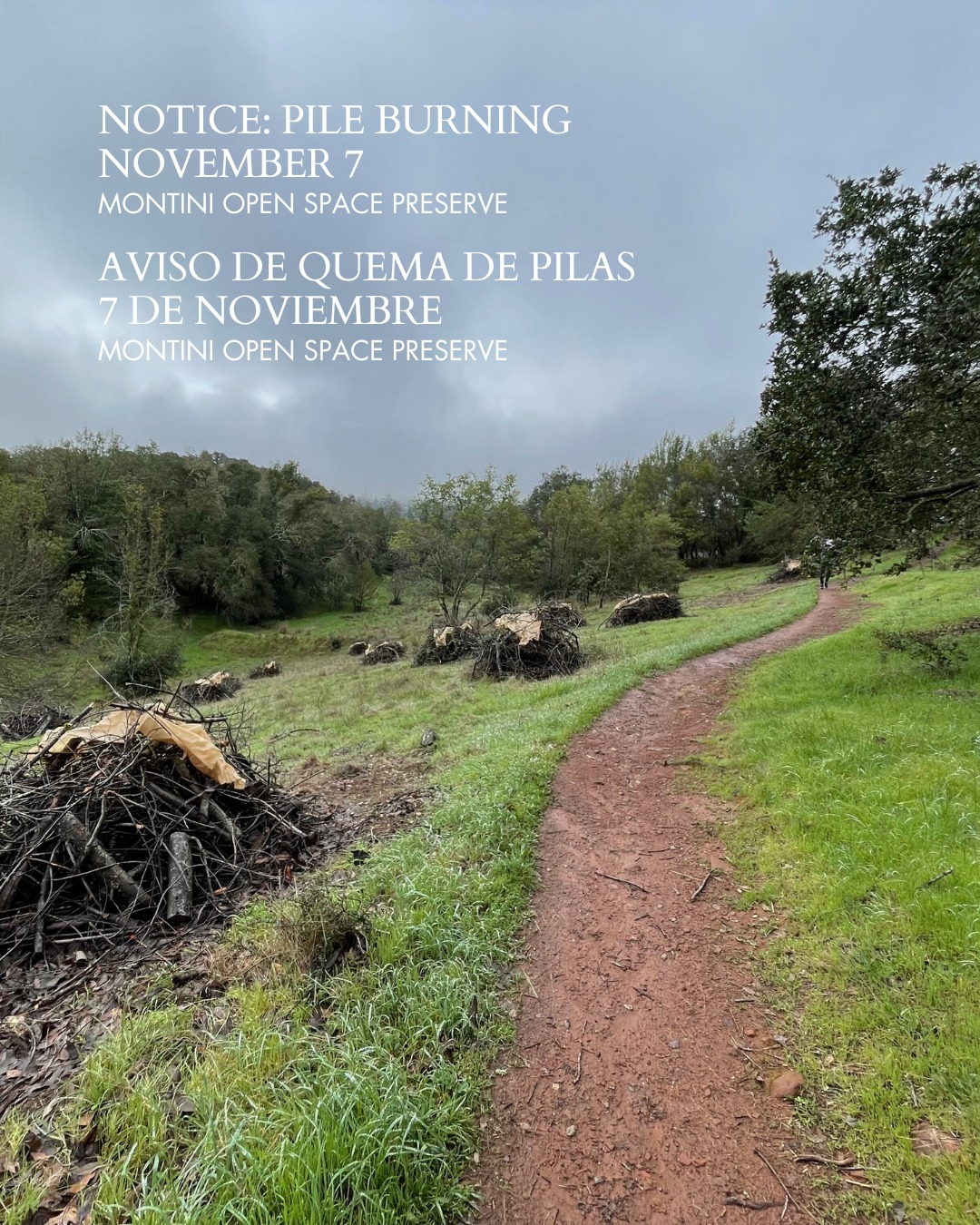 This Friday, November 7, Sonoma Ecology Center will conduct controlled pile burns at Montini Open Space Preserve as part of wildfire risk reduction efforts funded by the California State Coastal Conservancy. While the park remains open, some trails may be impacted so please observe all closure signs. If you see smoke coming from north of Sonoma Plaza during this period, don’t be alarmed—these controlled burns are part of ongoing efforts to reduce wildfire risk and promote ecological resilience.