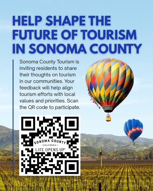 Sonoma County Tourism is inviting residents to share their thoughts on tourism in our communities to help shape the future of tourism in Sonoma County — Public feedback will help align tourism efforts with local values and priorities.