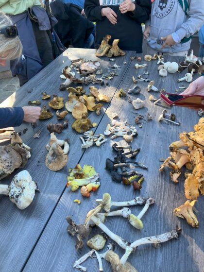 Sonoma CalNaturalist Nancy Evers Kirwan, of SMP, who helped organize the mushroom bioblitz, shared a photo of the multiple mushroom specimens from chanterelles to Death Caps found by the participants and identified by the mycologist from Sonoma State who was leading the walk.