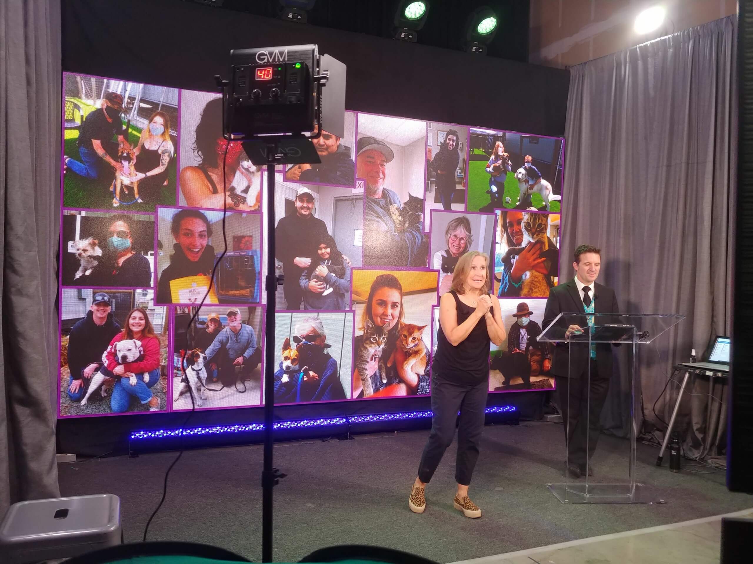 With only a slight delay, it was on with the show and the first auction item — champagne and chocolates delivered mid-broadcast to the high bidder. The night included auctioneer Greg Quiroga, a delivered dinner for VIPs, messages from adopted pet families, an update on the new PLL building, and a special message from Cirque du Soleil performers.