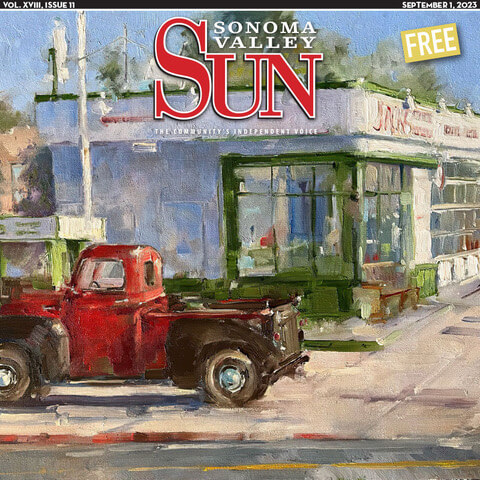 Sonoma has been a long-chosen location for his inspiration. He has been actively involved in the town’s art scene, with 10-plus years of participation in the annual Sonoma Plein Air Festival (this year, Sept. 11-16). Last year, he was asked to be the artist in residence at the Bartholomew Winery Sonoma. Their gallery now bursts with color, light, and an exuberant celebration of the appreciation of wine.