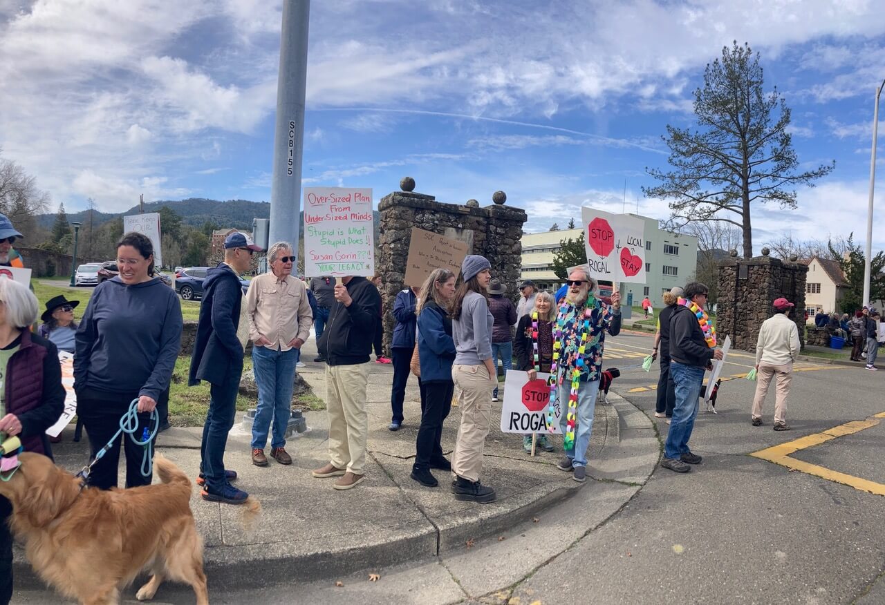 Over 250 locals showed up at noon March 10 to protest the proposed high-density development of the Sonoma Developmental Center campus, and to advocate for a community-driven plan. The state of California is in negotiation with developer Keith Rogal, LLC, whose Eldridge Renewal Plan includes a four-story luxury hotel and 900 housing units.