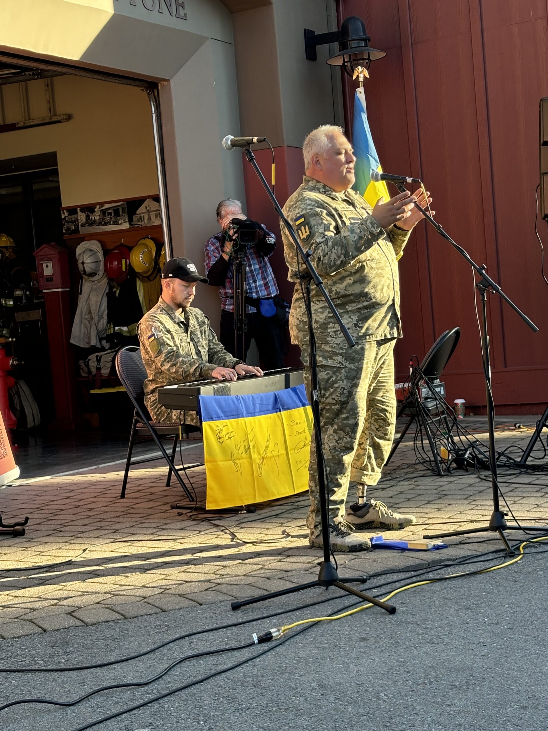 All professional musicians, at the start of Russian’s invasion of their country, these Ukrainians volunteered to serve. Several sustained major injuries. Subsequently they organized into the Cultural Forces, entertaining troops and going on tours of appreciation. The Ukrainian Consul from San Francisco was in attendance for the event.