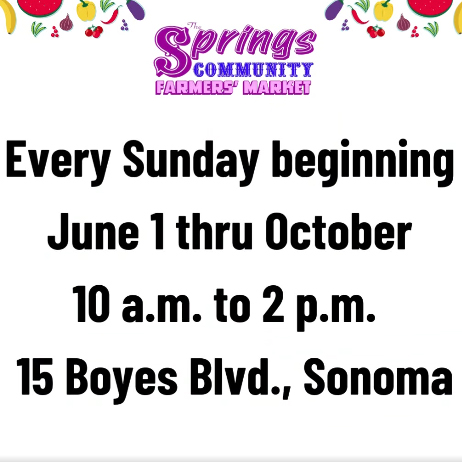 The Springs MAC is pleased to announce the grand return of one of Boyes Hot Springs’ most beloved traditions — The Springs Community Farmers Market!