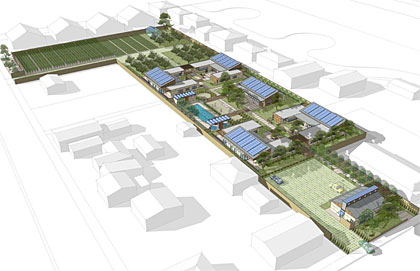 A gardening program will include a 1.25-acre organic garden, fruit orchards and energy-efficient production greenhouses to provide opportunities for physical skill development and healthy eating.