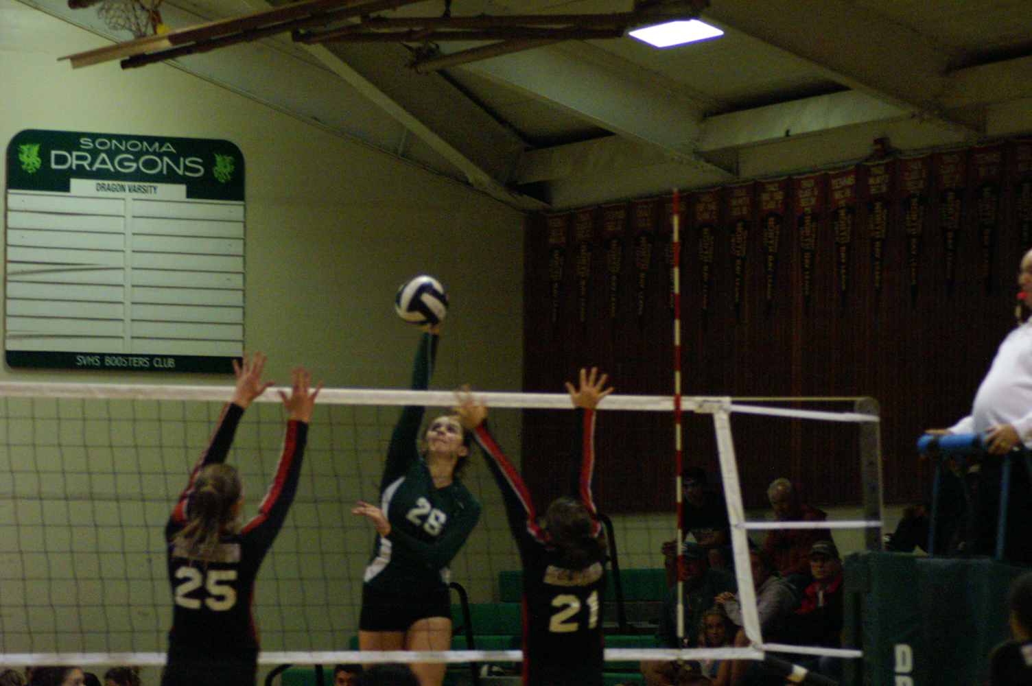 Against Healdsburg, Sonoma used solid defense and good passing to win the first set 25-18. In the second set, the Lady Dragons battled for a 25-23 victory.