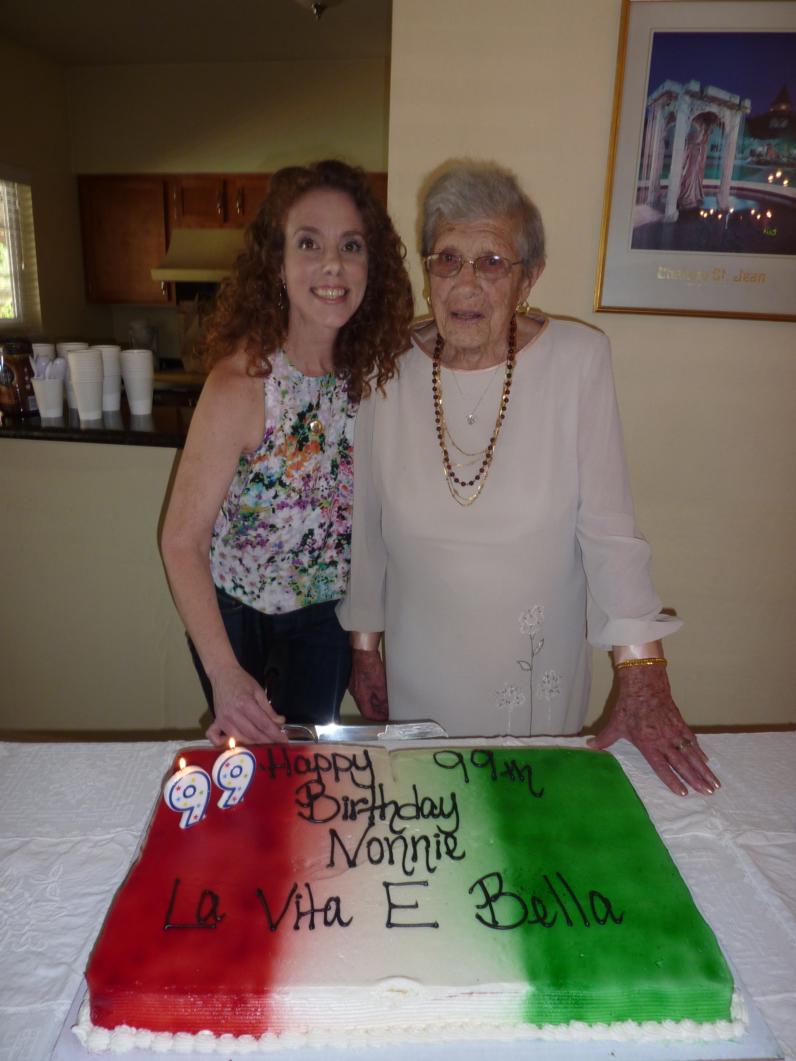 Anita Viviani-Tomassi, with one of her four grandchildren, Laura Tommasi-Simonson, celebrates her 99th birthday. The native Sonoman lives in the same house in which she and her late husband, John, raised their two sons. The party honoring “La Vita e Bella” was attended by family members and friends, with a special visit by Fr. Mike Kelly of St. Francis Solano.