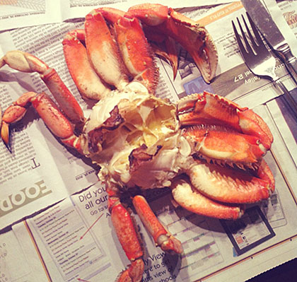 However, as a precaution, consumers are advised not eat the viscera (internal organs, also known as “butter” or “guts”) of crabs. The viscera usually contain much higher levels of domoic acid than crab body meat. When whole crabs are cooked in liquid, domoic acid may leach from the viscera into the cooking liquid. Water or broth used to cook whole crabs should be discarded and not used to prepare dishes such as sauces, broths, soups or stews (for example, cioppino or gumbo), stocks, roux, dressings or dips.