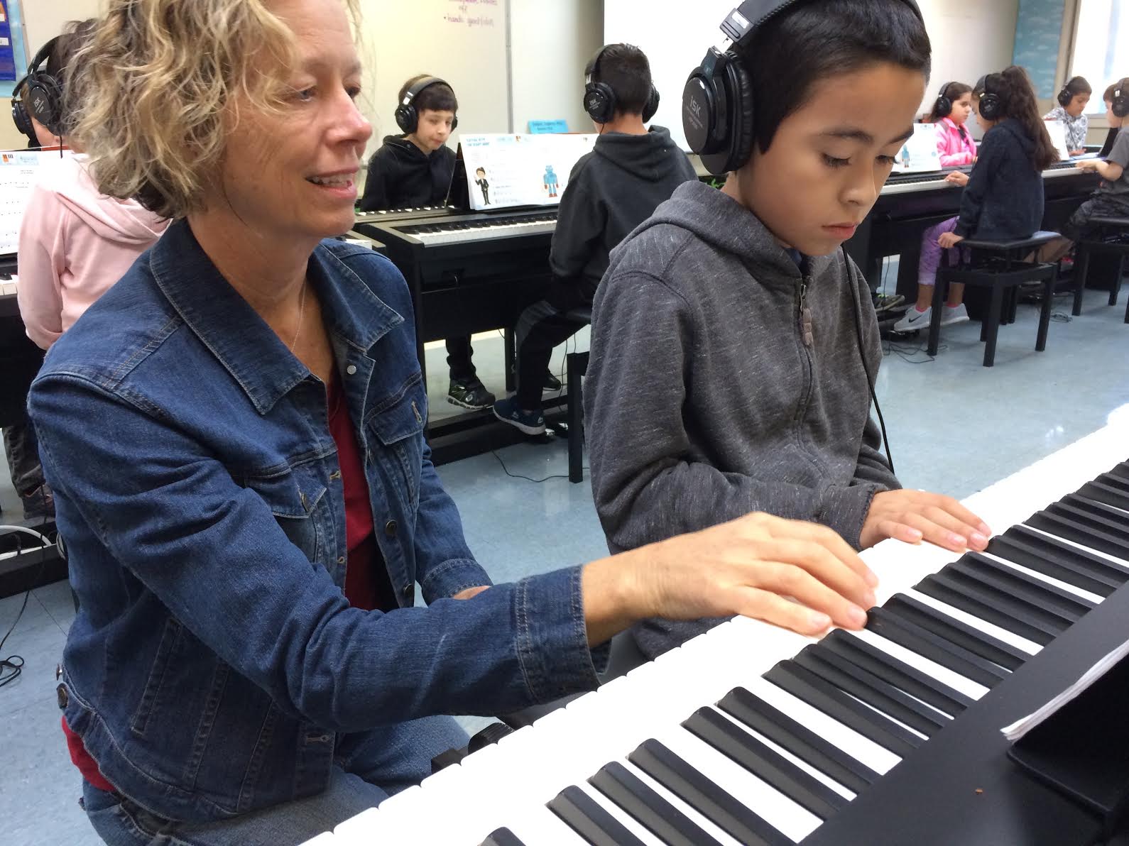 It consists of a piano lab at Dunbar, and one at Sassarini, each with 31 Roland keyboards. I teach 2nd and 3rd graders at both schools. Some 1st grade students come, because one class at Dunbar has both 1st and 2nd graders.