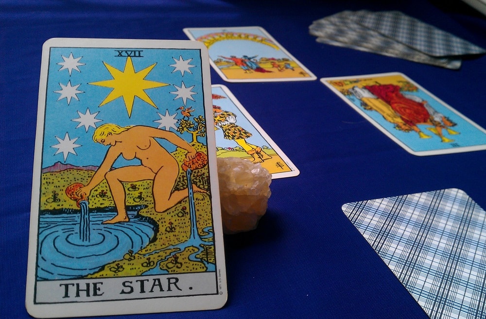 It depends. I don’t really read palms. Palm reading, now that you can learn. It doesn’t take a psychic. I hold their hand, and mostly I see the past, but some present and future. If I do the tarot cards, it’s not about the layout, it’s about the vibrations I get, it’s all psychic. And aura reading, I do that. That’s really about energies.