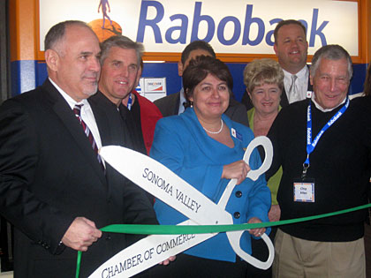 Rabobank celebrated the opening of its Sonoma location, the first in the county, with a ribbon cutting and party. Making things official are, from left, Rabobank CEO Rick Arredondo, Councilmember Tom Rouse, Branch Manager Cathleen Gorham, branch employees Anna Dawson, Senior Relationship Manager Sean Cutting,... Continue