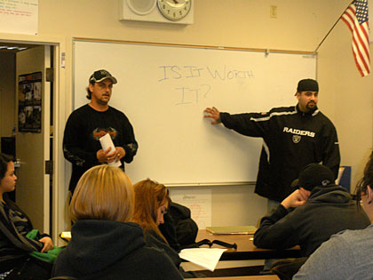 [caption id="attachment_24650" align="alignnone" width="420" caption="Aaron McClymonds and Ramon Cairo talk to the students at Creekside High School about the consequences of angry behavior and how to manage it."][/caption] For the past year or so Aaron McClymonds has been plying a new trade at Creekside High... Continue