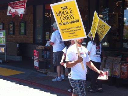 Some 50 supporters of higher standards for workers in the supermarket industry staged an “informational protest” in front of Whole Foods Market on Tuesday. The United Food and Commercial Workers contend the non-union chain fails to meet local industry standards in providing good wages and health benefits. “Customers care about sustainability and green, and that should include fair wages,” said Lisa Maldonado, executive director of the North Bay Labor Council. “Workers are part of the environment.” Staff inside the store greeted shoppers with complimentary bottled water and answered questions about the protest and store policy. Said one employee, “They have their job to do, and we have ours.”